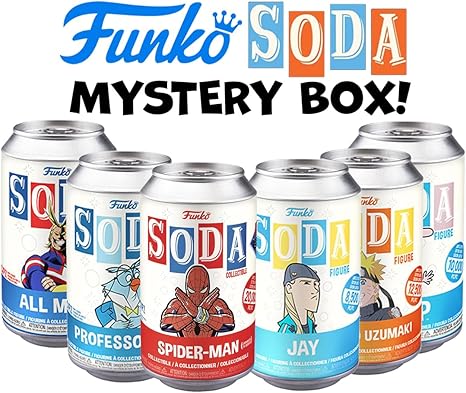 Introducing the Funko Vinyl Soda Mystery Box - Unleash the Excitement! Unbox the ultimate thrill with our Funko Vinyl Soda Mystery Box, where surprises await at every turn! Delight in the world of collectibles as you open the box to reveal not one, not two, but six captivating characters from various universes. Each Vinyl Soda figure showcases the signature Funko charm, blending nostalgia with contemporary appeal. What's inside is a mystery, but what we can guarantee is an assortment of beloved pop culture icons, fan-favorite characters, and rare exclusives. From superheroes to villains, animated legends to classic movie stars, the possibilities are endless! Item selection is completely random...which characters will you get? Collect, Display, and Trade: Assemble a stunning display of your favorite characters and create a striking arrangement that'll be the envy of all collectors. Each Vinyl Soda figure comes encased in a retro-style soda can, making it the perfect centerpiece for your collection. Plus, the cans are collectible themselves, adding an extra layer of fun to the experience. Chase Rare Variants: Elevate the excitement further with the chance to uncover ultra-rare "Chase" variants. These limited-edition figures sport unique paint jobs or rare character versions, making them the most coveted treasures in the Funko community. The odds of finding a chase figure is 1-in-6 on every can you open! Perfect Gift for Fans and Collectors: Whether you're an avid Funko enthusiast or just stepping into the world of collectibles, the Vinyl Soda Mystery Box makes an excellent gift for yourself or fellow fans. Surprise your loved ones with a box of joy and relish the moment of unboxing six captivating characters. Join the Funko Community: Connect with a thriving community of Funko lovers, trade figures, and bond over your shared passion for pop culture. The hunt for your favorite characters never ends, and the Vinyl Soda Mystery Box is your ticket to endless fun a